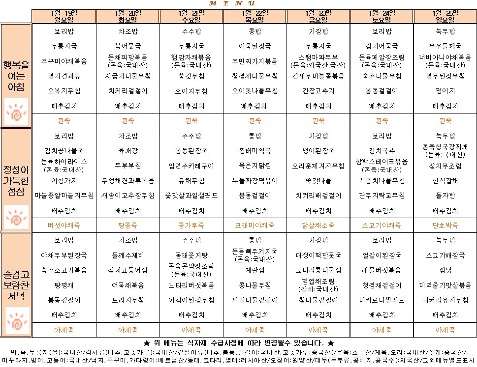 1¿ù 19ÀÏ~1¿ù25ÀÏ ½Ä´ÜÇ¥ÀÔ´Ï´Ù