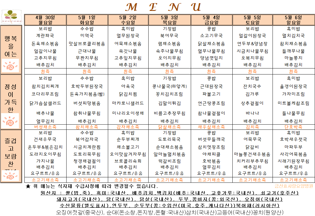5¿ù ù°ÁÖ ½Ä´ÜÀÔ´Ï´Ù.
